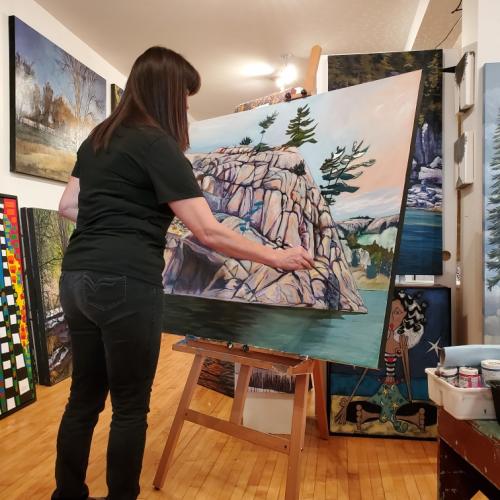 Suzette takes her inspiration from the natural world. Her landscapes burst with colour and energy, expressing her Passion for the rocks, trees and shorelines and vistas found both in Killarney & Algonquin Provincial Parks and across Grey Bruce County where she resides.
